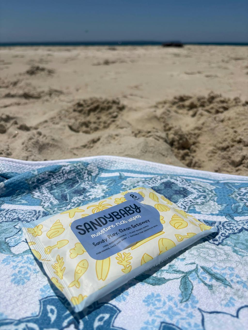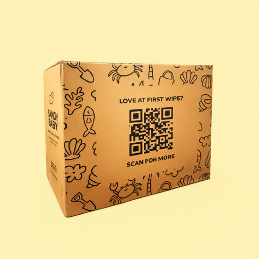 Wipes are the ultimate premium 2 in 1 wipe specially designed to gently remove sand, salt and grime whilst hydrating and moisturising delicate skin. Perfect for beach days, park trips, or on-the-go cleanups, our wipes are soft, safe, and gentle enough for babies and kids. Scientifically formulated by Australia's leading pharmaceutical Scientists, Sandy Baby Wipes really are the wipe you didn't know you needed! - Patent Pending